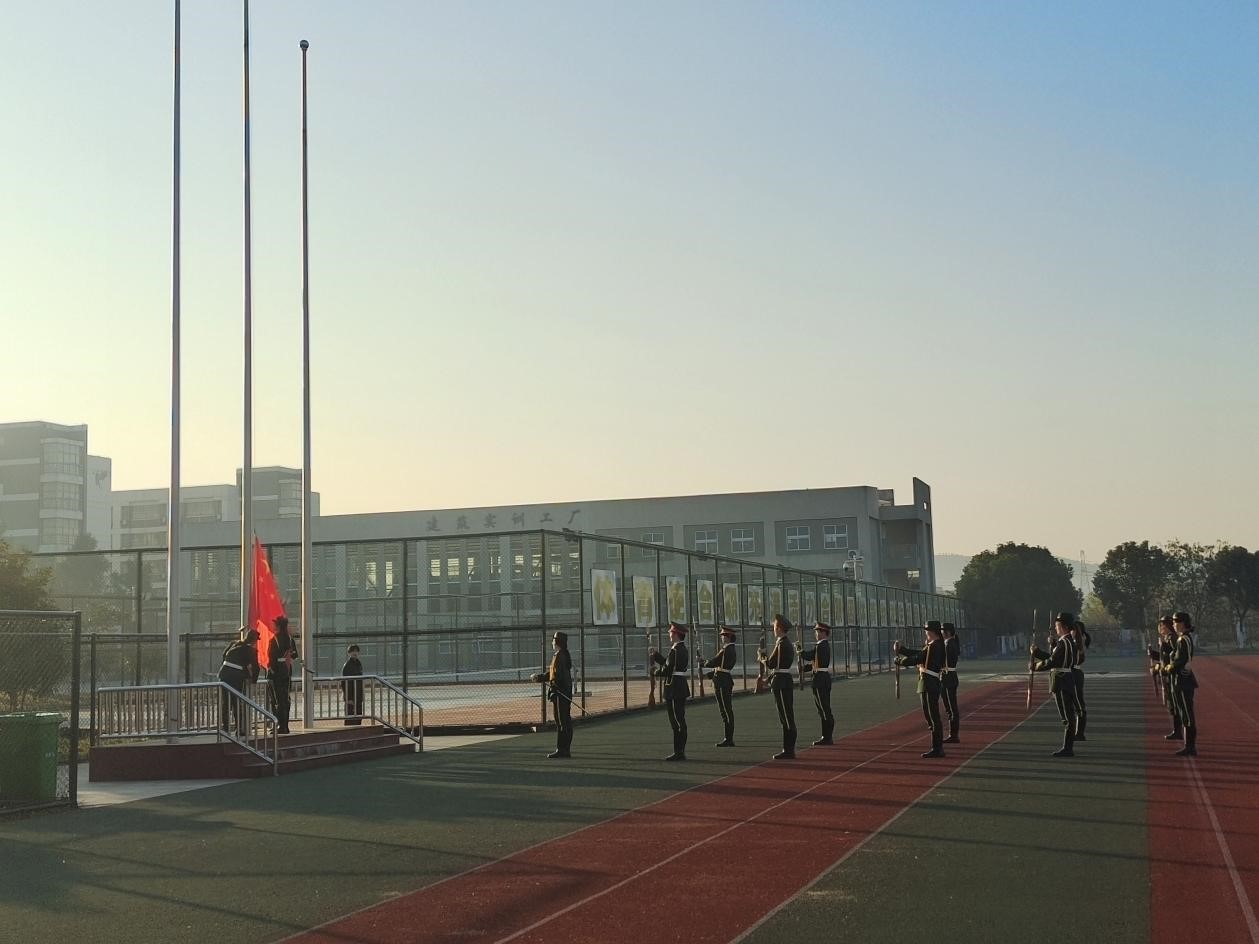 升旗仪式结束后,24建装2班徐晖同学进行《安全校园 你我共创》的主题演讲,号召大家加强交通安全知识学习,提高校园内外交通安全意识,共同行动起来,营造一个安全、有序的校园环境。