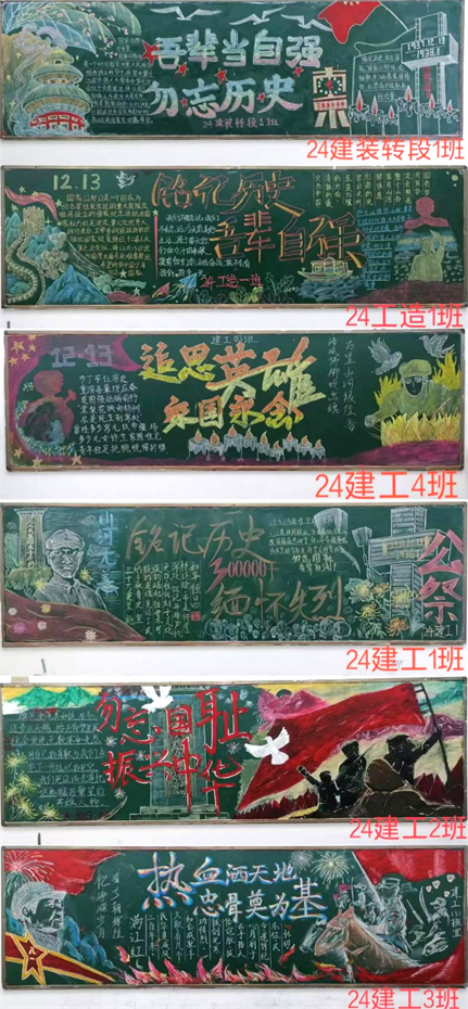 开展主题板报绘制活动。各代管教室班级以“勿忘国耻 吾辈自强”为主题绘制黑板报,同学们巧妙构思,精心设计版面,有的班级通过简洁而有力的线条勾勒纪念碑的轮廓,庄重肃穆之感扑面而来;有的班级则配以详实的历史文字记载,生动地再现了那段血与火的岁月。黑板上“铭记历史”“勿忘国耻”“振兴中华”等大字,醒目地提醒着大家,这段历史不能忘,也不敢忘。