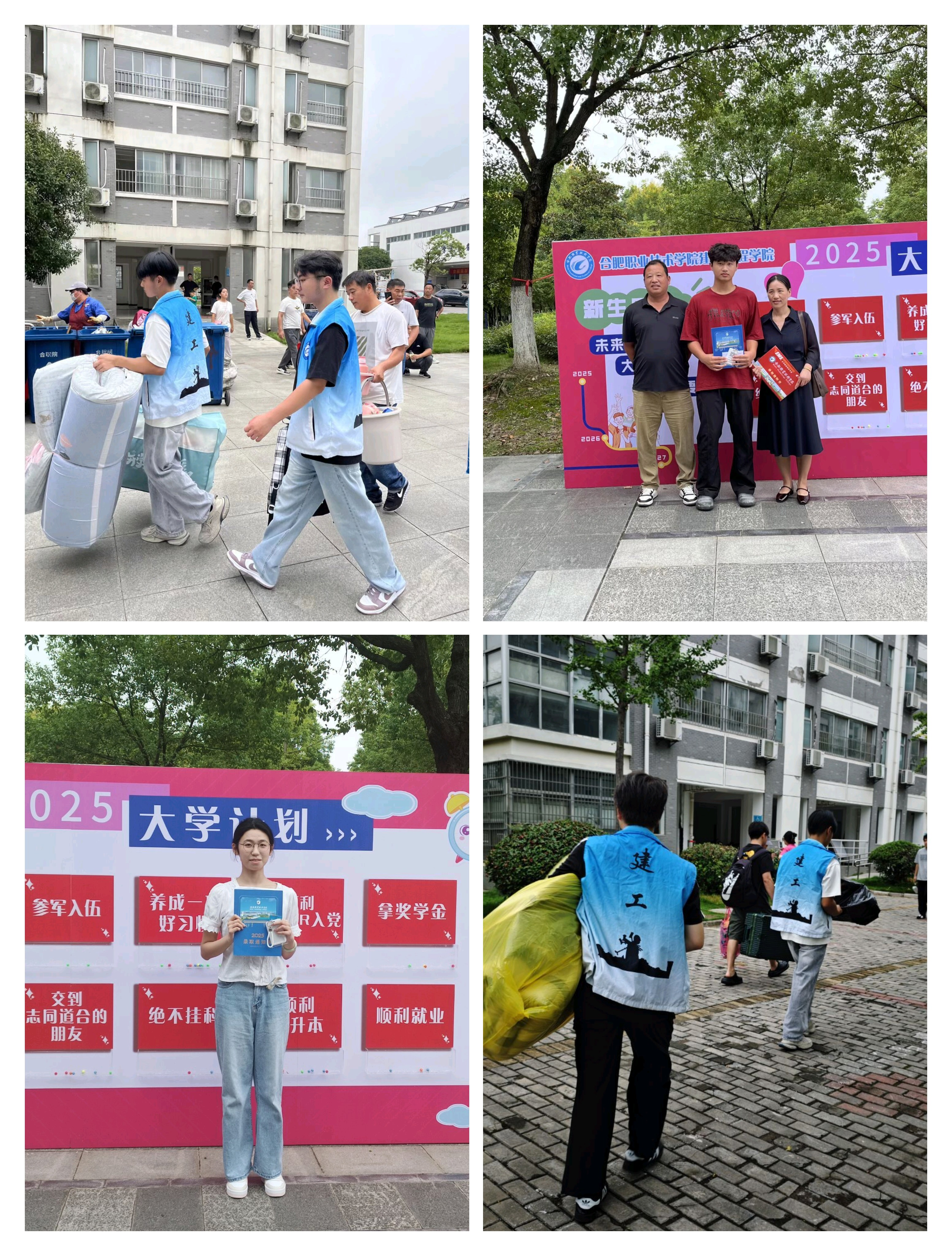 7点,迎新工作便已启动。身着蓝色马甲的志愿者们早早到位,在登记点为新生办理手续、核对信息、发放物资,在校园道路上为新生指引方向、搬运行李,用热情与耐心搭建起服务桥梁。“同学别急,慢慢核对信息”“行李我帮你扛,跟我往这边走”,志愿者们的贴心服务,让新生快速褪去初到的陌生感,感受到校园的温度。
