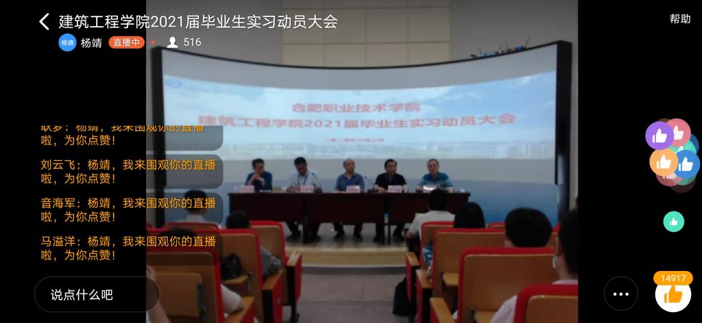 副院长魏永恒教授宣读《建工学院顶岗实习管理规定》;18工造3班葛梓龙同学代表2021届毕业生作表态发言。
