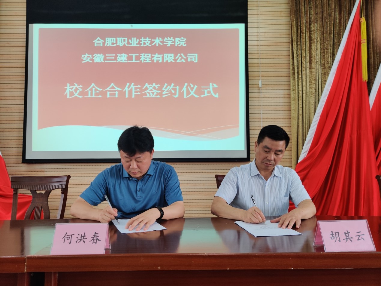 顶岗实习动员会结束后,合肥职业技术学院和安徽三建工程有限公司签订了校企合作协议。