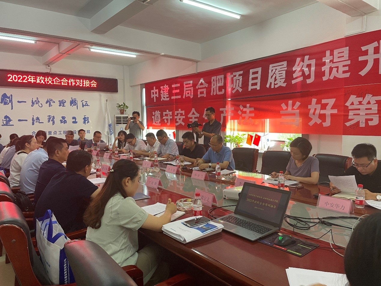 为促进校企合作,增进沟通交流,深入贯彻落实党中央、国务院关于高校毕业生就业工作的决策部署,落实教育部、省教育厅关于高校“书记校长访企拓岗促就业专项行动”要求,不断提高人才培育质量,加大对企业的人才供应,实现“合肥学子建合肥”。7月19 日上午,2022年政校企对接洽谈会在合肥职业技术学院双创大厦建设项目部会议室顺利召开。