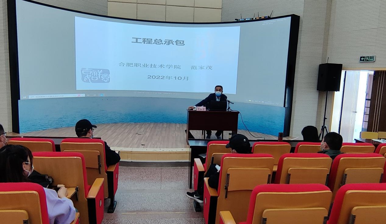 范家茂首先以“安徽建造迈上新台阶”开题,强调了建筑业作为支柱产业的重要作用,解读了近年来行业的利好政策,并结合住建部“十四五”建筑业发展规划,总结了十大关键词进行重点讲解,提振了作为“建筑人”的全体师生对行业未来的发展信心。接着,范家茂结合工程实践,从工程总承包的由来、工程总承包招标与合同管理、实际操作中的注意事项、工程总承包管理等进行讲解,并重点对建设项目工程总承包合同示范文本进行了解读。最后,范家茂对实际参与的“滨湖景程东区”项目案例进行介绍,该项目创新的采用“限房价、竞地价”模式进行开发,提高了工程项目的建设效率、节省了工期。整场讲座语言风趣、接地气,但又有很强的专业性、指导性,全体师生认真听讲,并跟随讲解思路进行了深入的思考。