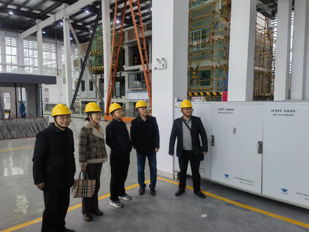 会后,客人们在建工学院党政班子的陪同下,参观了“建筑实训工厂”。