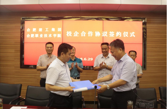 仪式后,合肥职业技术学院和合肥建工集团签订了“2019届合肥建工班校企合作协议”,标志着校企合作进入新征程。