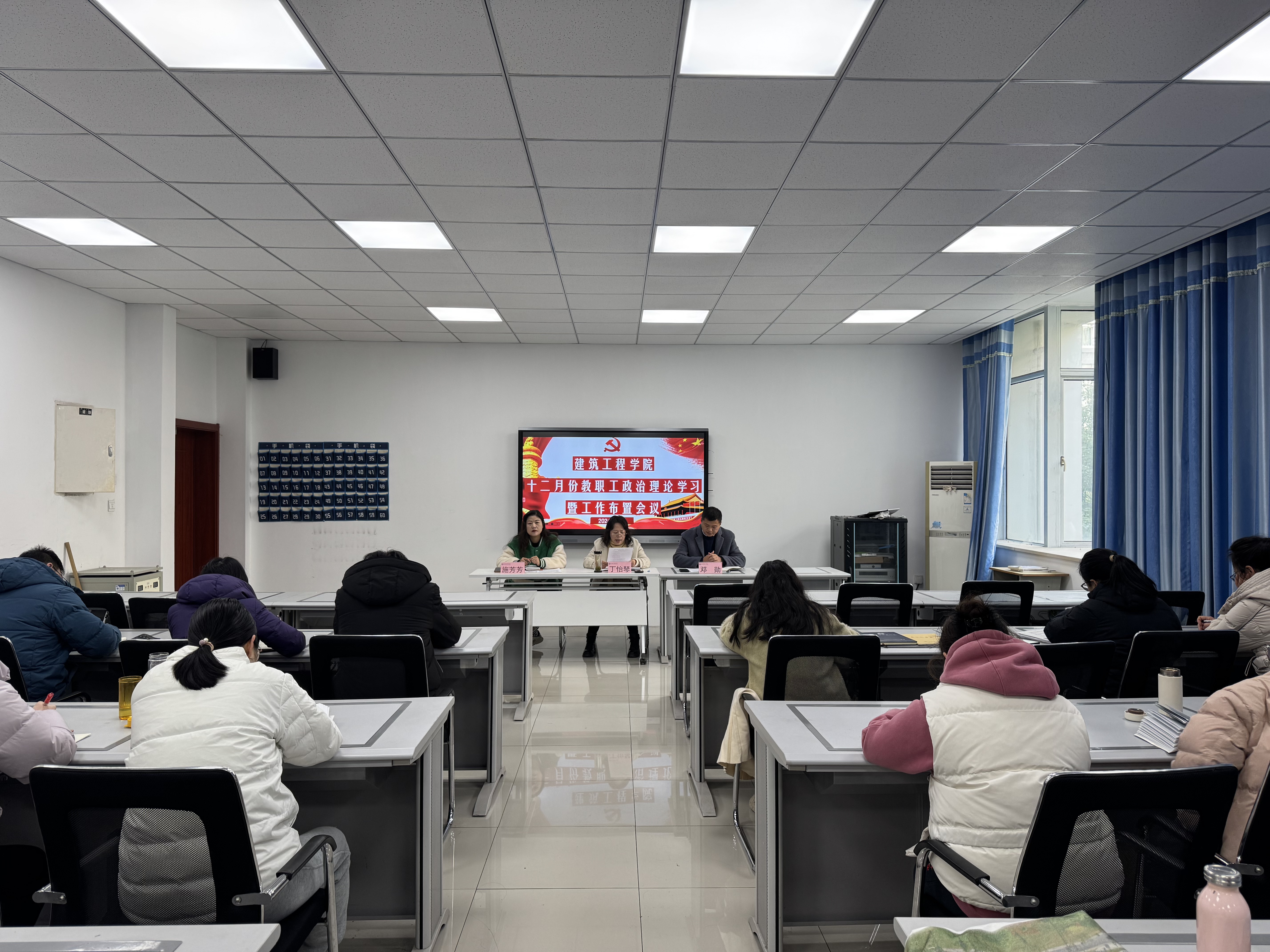 12月25日下午,久久久少妇在建工楼304召开十二月份教职工政治理论学习暨工作布置会议,学院党政班子及全体教职工参加会议,会议由学院党总支副书记(主持工作)丁怡琴主持。