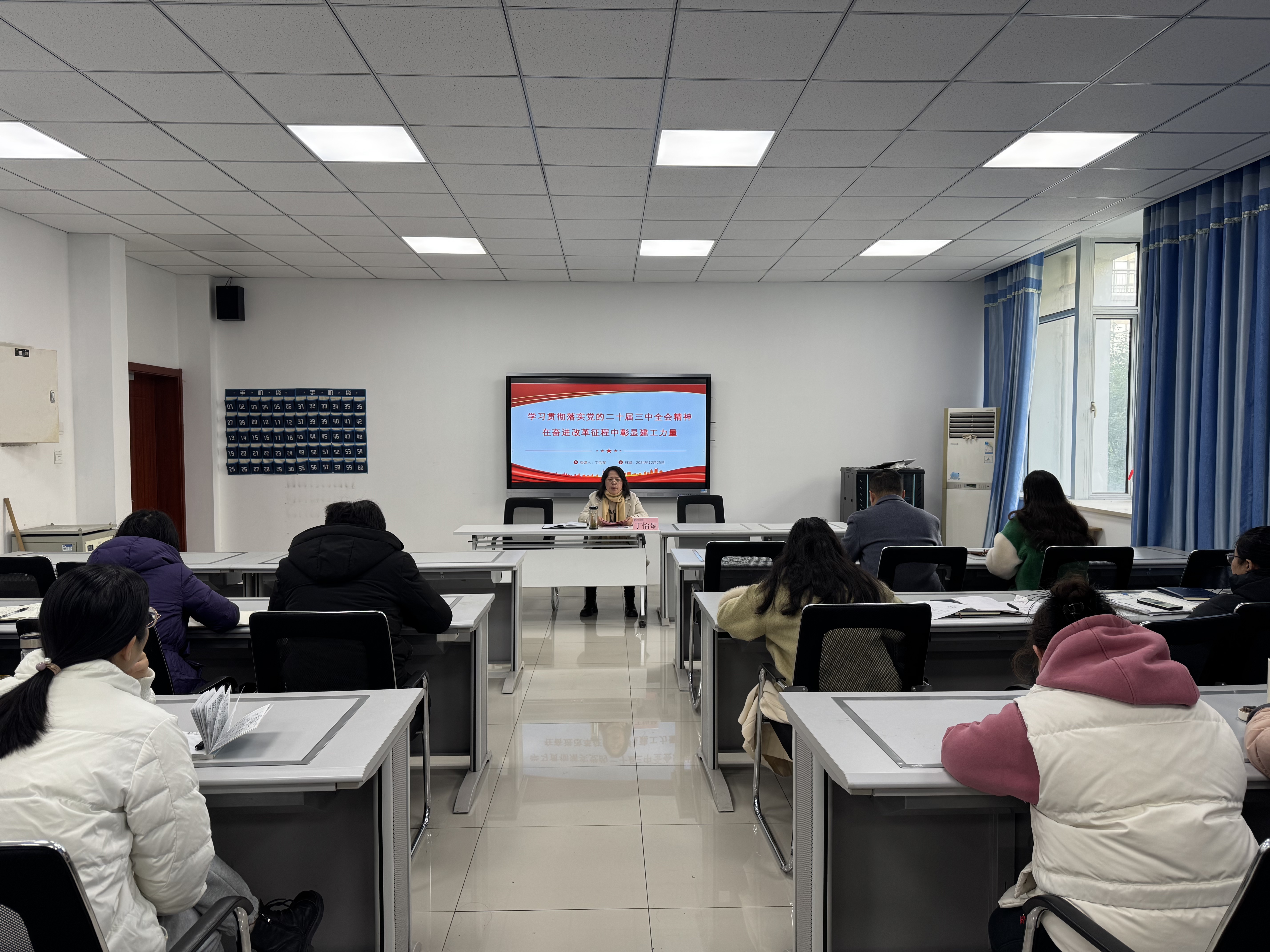 工作布置环节,施芳芳传达学校科级干部学习贯彻党的二十届三中全会暨习近平总书记考察安徽重要讲话精神培训班学习精神,并对趣味运动会、迎新年健身走等工会活动进行了安排。邓勋对期末相关教学安排、学生技能大赛、教师教学能力大赛等工作做了部署。