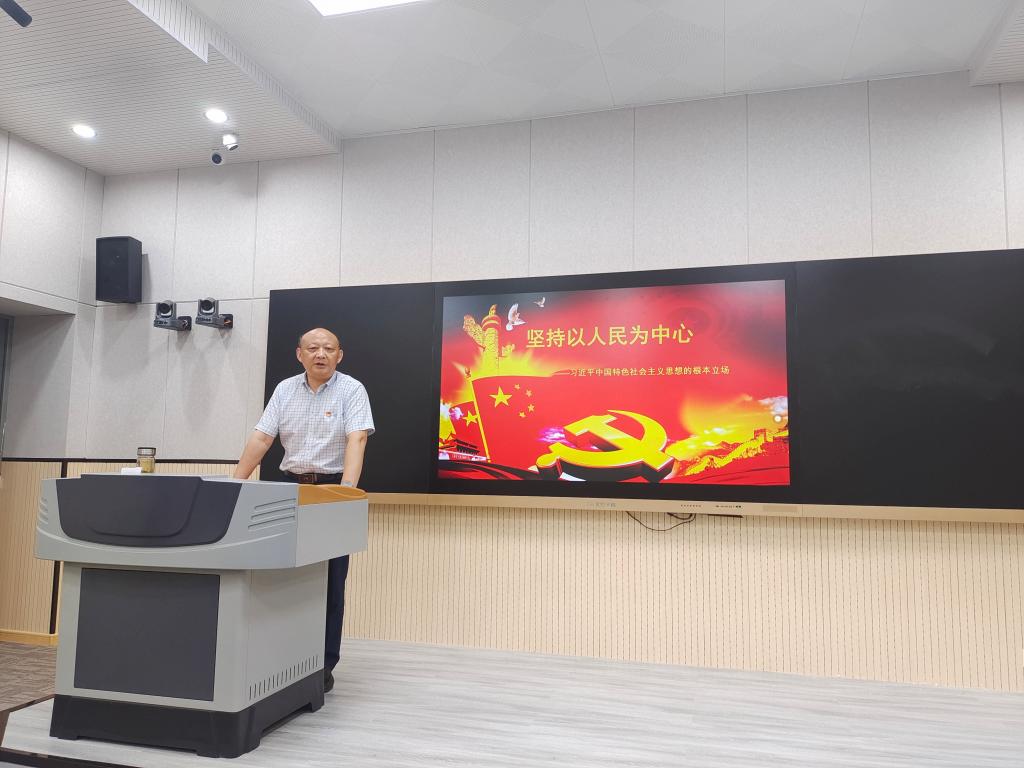此次活动由校党委委员、副校长周晓隆为我院全体教职工讲授题为《坚持以人民为中心》的主题党课,他从五千年中华文明民本思想、以人民为中心的理论基础、以人民为中心的基本内涵三个维度为大家讲述了我党建党100年来坚持全心全意为人民服务,为人民谋幸福、为民族谋复兴的初心和使命。周晓隆通过分享他的学习心得让大家更直观的感受到我党以人民为中心的根本目的是发展为了人民,根本动力是发展依靠人民,根本价值是发展成果由全体人民共享。