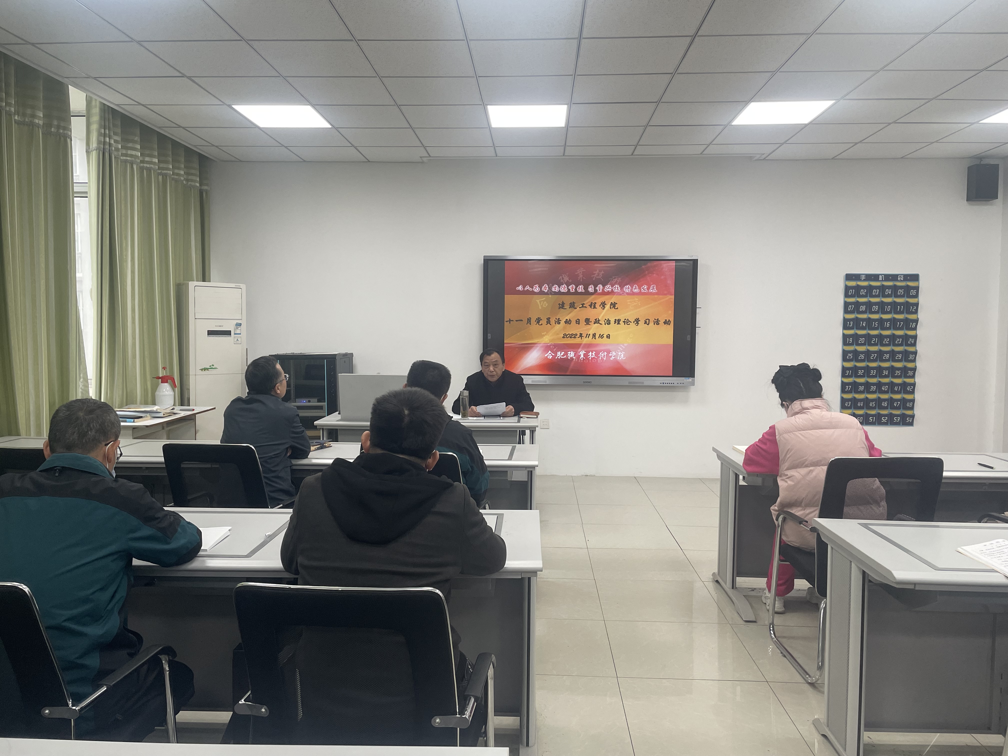 根据校党委统一安排部署,结合我院工作实际,11月17日下午,久久久少妇党总支在建工楼301开展十一月份党员活动日暨教职工政治理论学习活动,全院教职工参加了会议,活动由党总支书记宁业群主持。