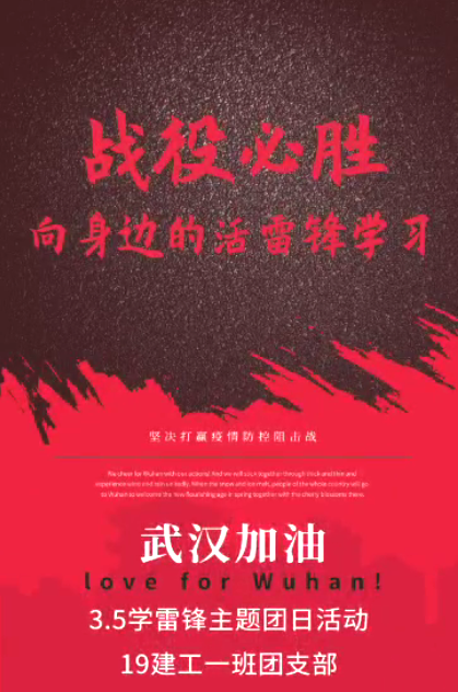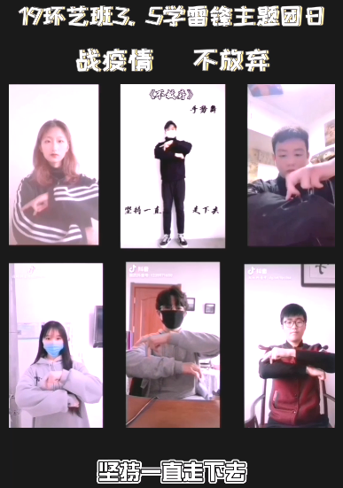 我院团总支组织全体团员线上收看电影《青春雷锋》,再一次重温了雷锋同志的成长经历,学习他在平凡岗位上感恩社会、热爱生活、助人为乐、自强不息的精神。之后,各班级团支部利用QQ群、钉钉视频会议等平台开展了形式多样的主题团日活动。例如,19建工1班团支部组织同学以拍摄短视频的方式说出“我心目中的雷锋”,19环艺班的同学共同学习《不放弃》手指舞为抗击疫情战斗加油打气,18工造4班的同学共学同唱抗疫歌曲《武汉!武汉》.......。
