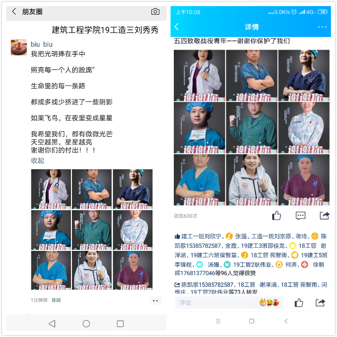 5月2日开始,我院号召团员积极参加“致敬战疫青年,谢谢你保护了我们”主题活动,同学们积极响应,纷纷以发布微博、微信朋友圈、QQ说说等方式向战疫英雄们表达心中的崇敬和感谢。