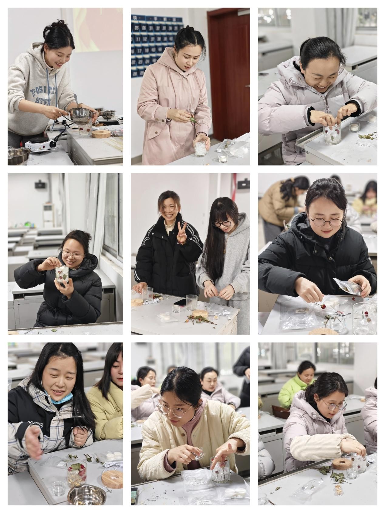 “先将蜡块加热至完全融化,再根据个人喜好添加精油,搅拌均匀后倒入模具中……”跟随着制作视频,老师们不时地相互交流着想法与创意。在制作过程中,大家互相帮助,气氛温馨而融洽。大家纷纷表示,平时忙于教学和科研,很少有机会能静下心来亲手制作一件东西。今天这个活动能让自己感受到手工的魅力,也在忙碌的生活中找到了一份宁静与美好。一定把这份美好带回到工作中,用更加饱满的热情去对待学生,去对待教育事业。