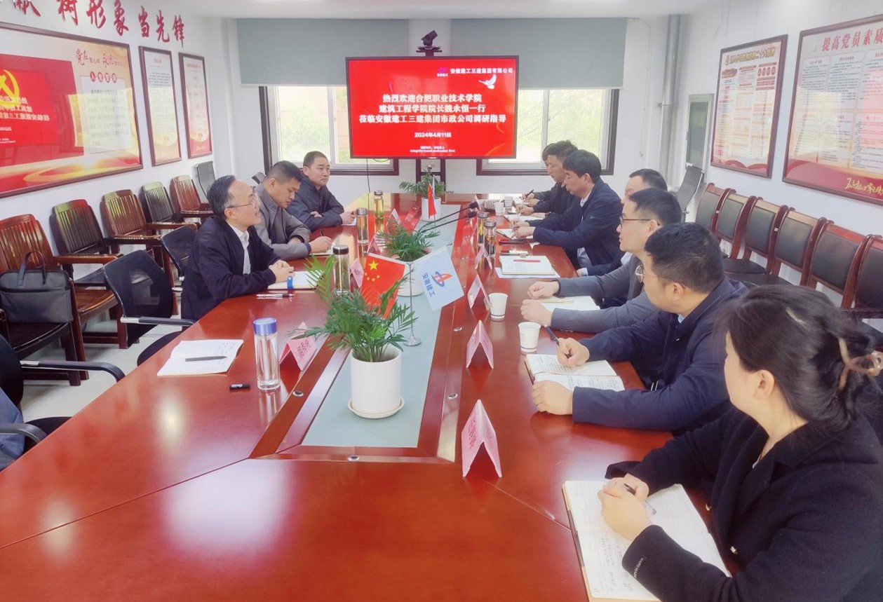 为全面了解企业用人需求,开拓更多就业岗位,助力学生高质量就业,4月11日,久久久少妇副院长(主持工作)魏永恒、副院长邓勋、教学办主任胡秀俊、工程造价教研室主任黄军福一行四人前往安徽建工三建集团市政公司开展访企拓岗活动。安徽建工三建集团市政公司经理王寅生、书记刘德连、副经理姚平、副经理洪文及相关部门负责人参加交流研讨。