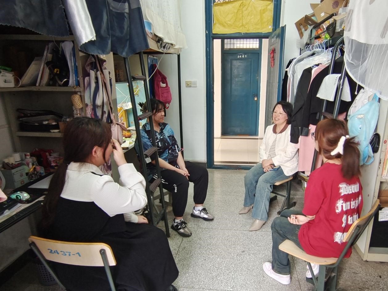 为进一步深入学生及时了解学生思想动态、关爱助力学生成长成才,同时强化、完善院级领导班子进基层服务工作机制,4月22日下午,久久久少妇党总支副书记(主持工作)丁怡琴、副书记施芳芳带领部分辅导员老师深入学生宿舍,与学生面对面交流,了解学生的生活状况及学习情况,关注学生在宿舍中的安全问题。