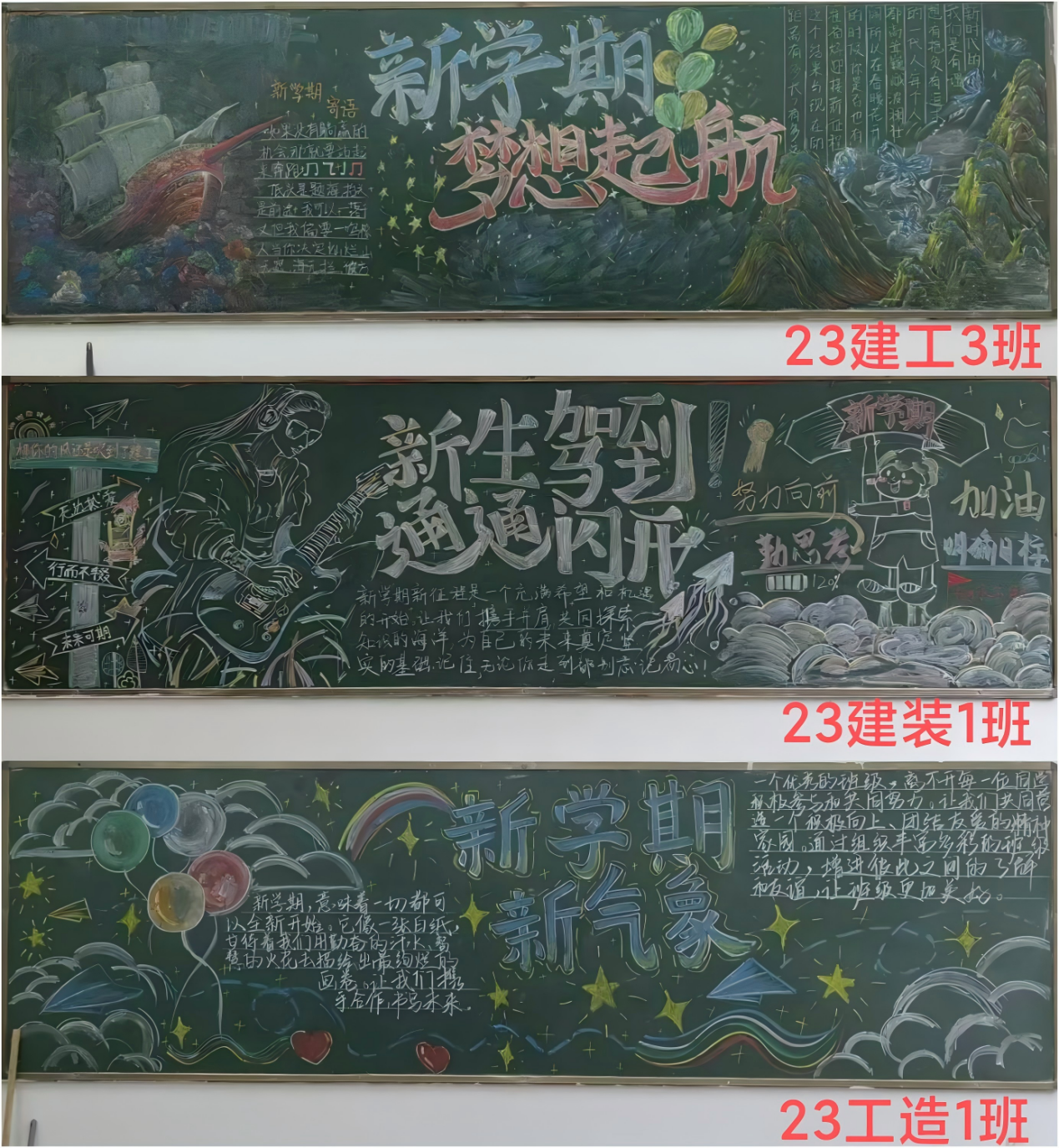 新学期,新气象,新征程。黑板报不仅美化了班级环境,更在无形中激励着每一位同学以更加饱满的热情和更加坚定的步伐,迈向属于自己的辉煌未来。我们相信,在这个充满希望的新学期里,每一位同学都能在新征程中书写属于自己的精彩篇章!(供稿:昌逸文 初审:施芳芳 审核:丁怡琴)