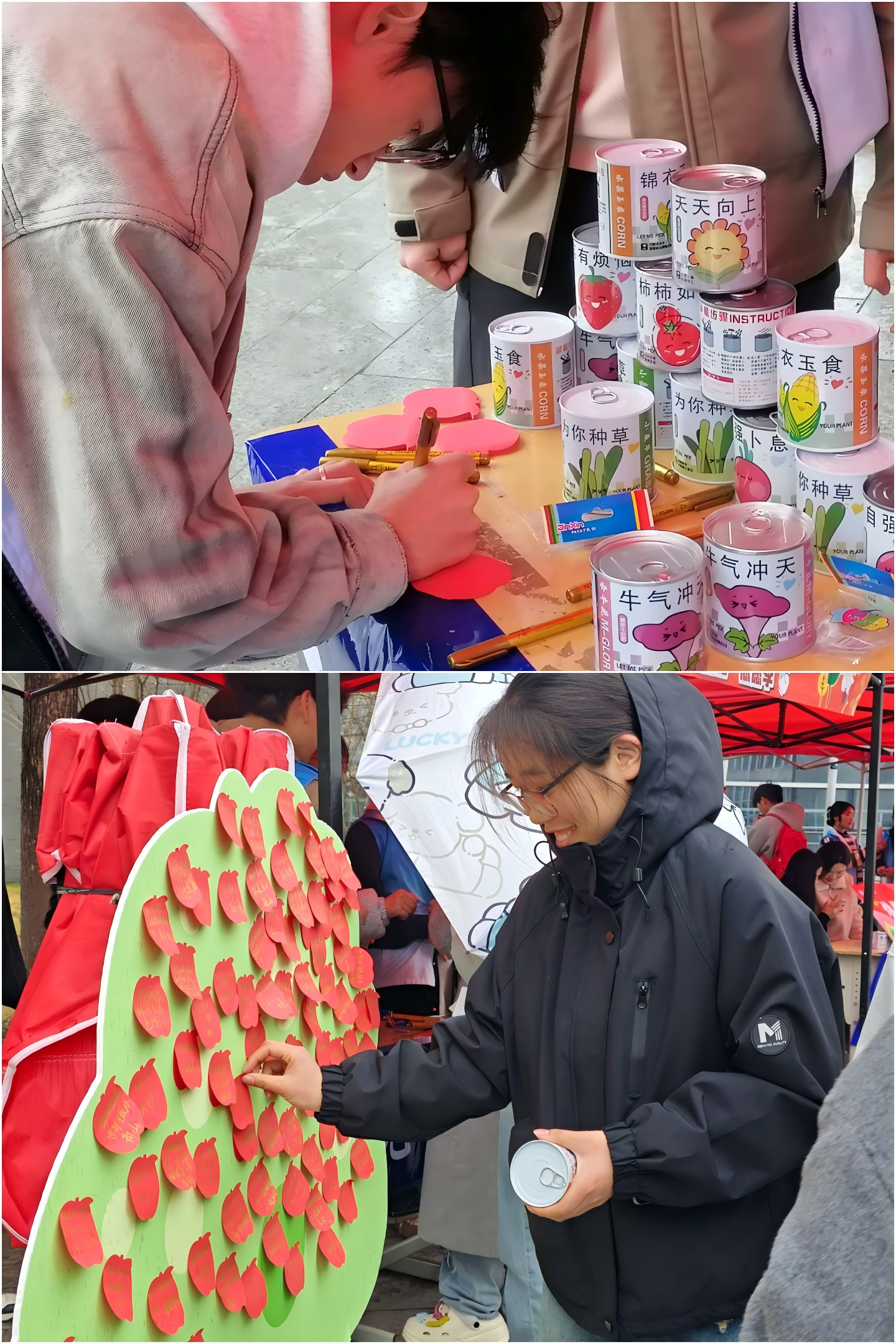 另一边“志愿送绿爱满途” 植树节环保活动也在如火如荼地进行着。志愿者们向同学们宣传环保知识,倡导大家爱护花草树木,共同守护美丽校园。同学们写下环保宣言领取自己的小小绿植罐,浇水灌溉,也在心中种下了一颗关于环保的种子。