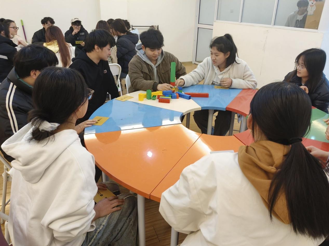 活动开始后,各小组成员迅速进入状态,他们克服沟通障碍,充分发挥团队智慧,通过不断的尝试和调整,逐渐找到了有效的沟通方式。在搭建过程中,有的小组选出了默契的“动手者”负责实际操作,有的小组则通过精细的分工协作,确保了任务的顺利完成。