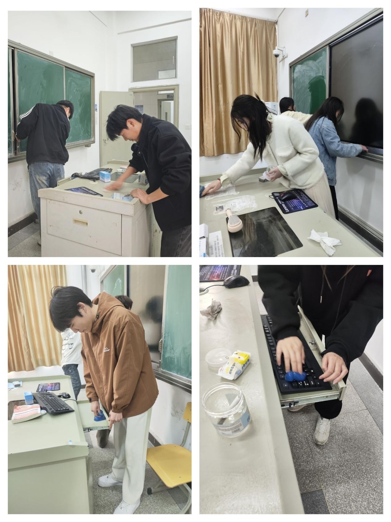 3月11日下午,23建装1班的同学们上完课后集结在鼓山校区C教学楼下。他们带着专业工具,柔软的清洁布、专用清洁剂等,为教室里的多媒体设备来一场全方位、无死角的深度清洁。在清洁过程中,同学们充分展现了劳动精神。他们不怕脏、不怕累,每一个动作都认真细致,每一个细节都不放过。灰尘弄脏了衣衫,但没有人抱怨,反而在相互协作中洋溢着笑容,因为大家深知,这是在为师生们创造更好的教学与学习环境,是一次有意义的劳动实践。
