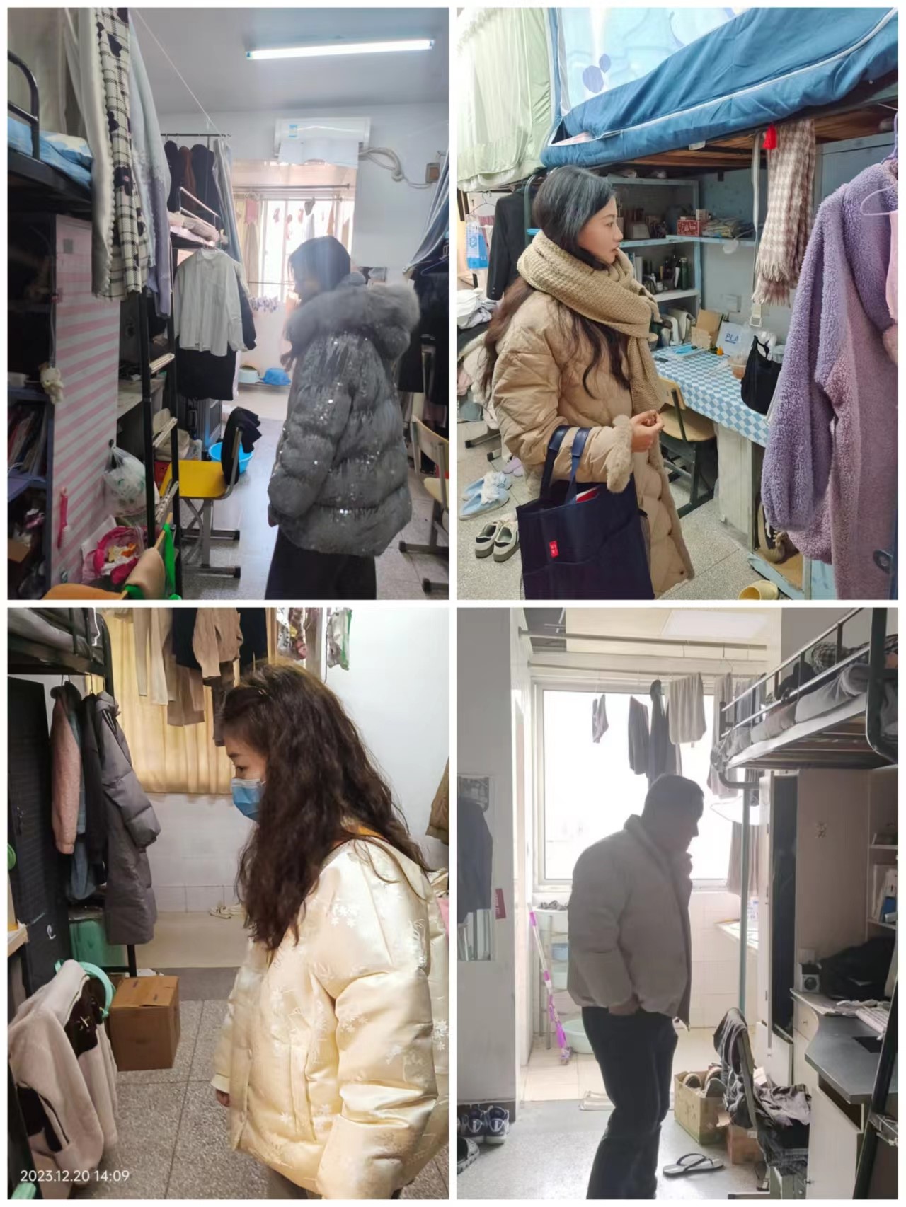 排查走访中,辅导员老师们提醒同学们冬季气候干燥,天气寒冷,注意作息规律,强调了宿舍安全问题,对规范用电提出严格要求,严禁使用违规电器,防范宿舍火灾,提高安全防火防盗意识。同时也对部分学生宿舍的地面与床铺卫生、物品摆放等卫生较差的情况进行了提醒和批评,督促学生尽快整理清扫宿舍。